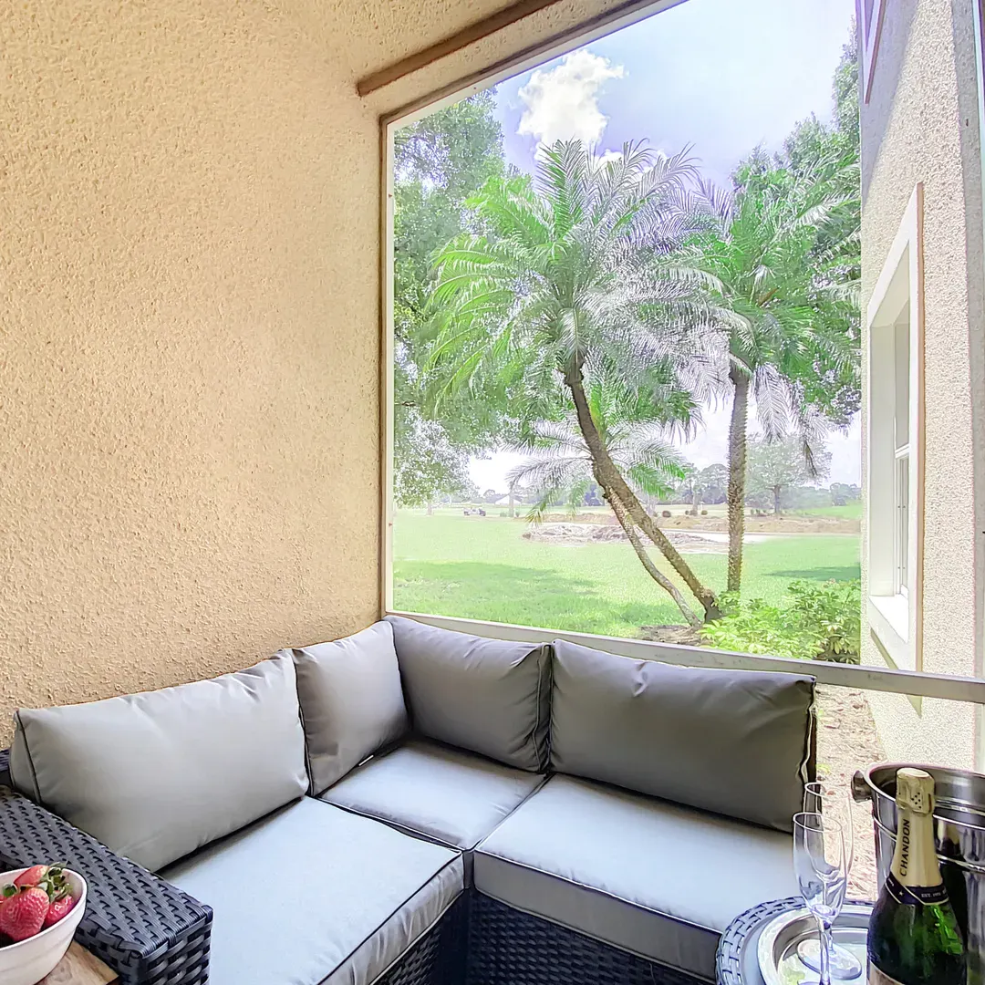 Welcome to your dream vacation paradise inside PGA Village Resort only 250 yards from the Golf Club House and close to shopping and restaurants. Largest GOLF VILLA in the PGA Village clubhouse area approximately 1600sf sleeping up to 6 persons (4 adults and 2 kids) with 2 Bedrooms, 1 Sleeping Den with 1 Twin bed, Living Room, 2 Bathrooms, Fully Equipped Kitchen, and an Entertaining Patio. Also, enjoy TVs in all rooms and a large 75-inch Living room Smart TV with Netflix for your favorite shows.